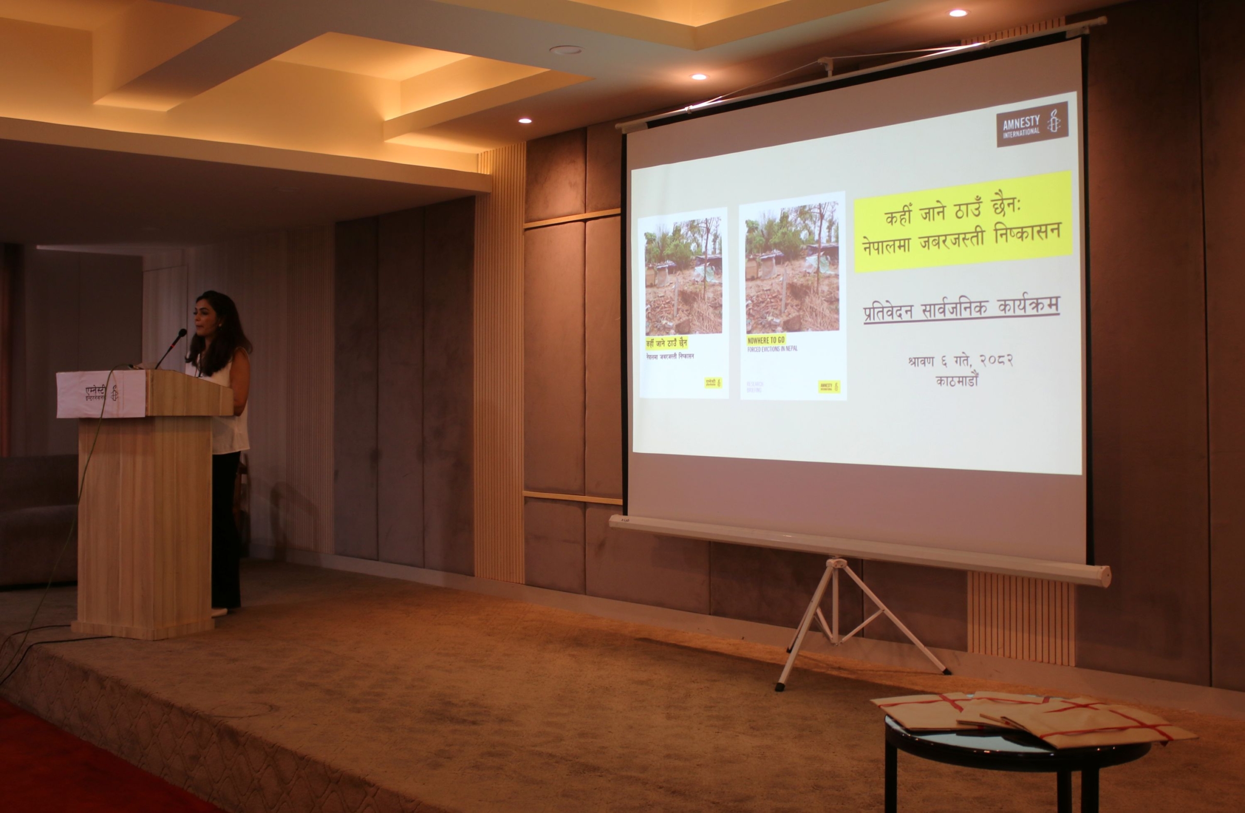 On 22 July 2025, Amnesty International launched its latest research briefing titled “‘Nowhere to Go: Forced Evictions in Nepal” at a program held in Kathmandu. The report exposes an alarming rise in forced evictions across Nepal in recent years and the State’s failure to protect people’s right to adequate housing, particularly for marginalized groups such as Dalits and Indigenous Peoples. Despite legal safeguards enshrined in the Constitution and the Right to Housing Act of 2018, the report finds that these protections have largely failed to translate into meaningful change on the ground.