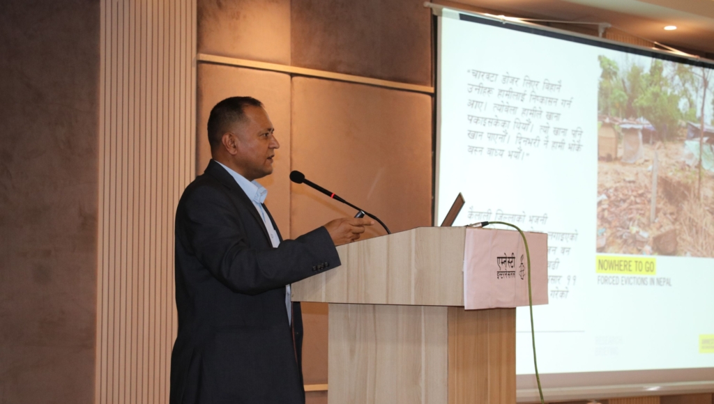 Nawaraj Sapkota, Joint Secretary at the National Human Rights Commission (NHRC), reflected on the challenges the NHRC faces in addressing this issue: “We’ve documented three to four cases of forced evictions ourselves, but the problem is widespread and growing, especially due to development projects.”
